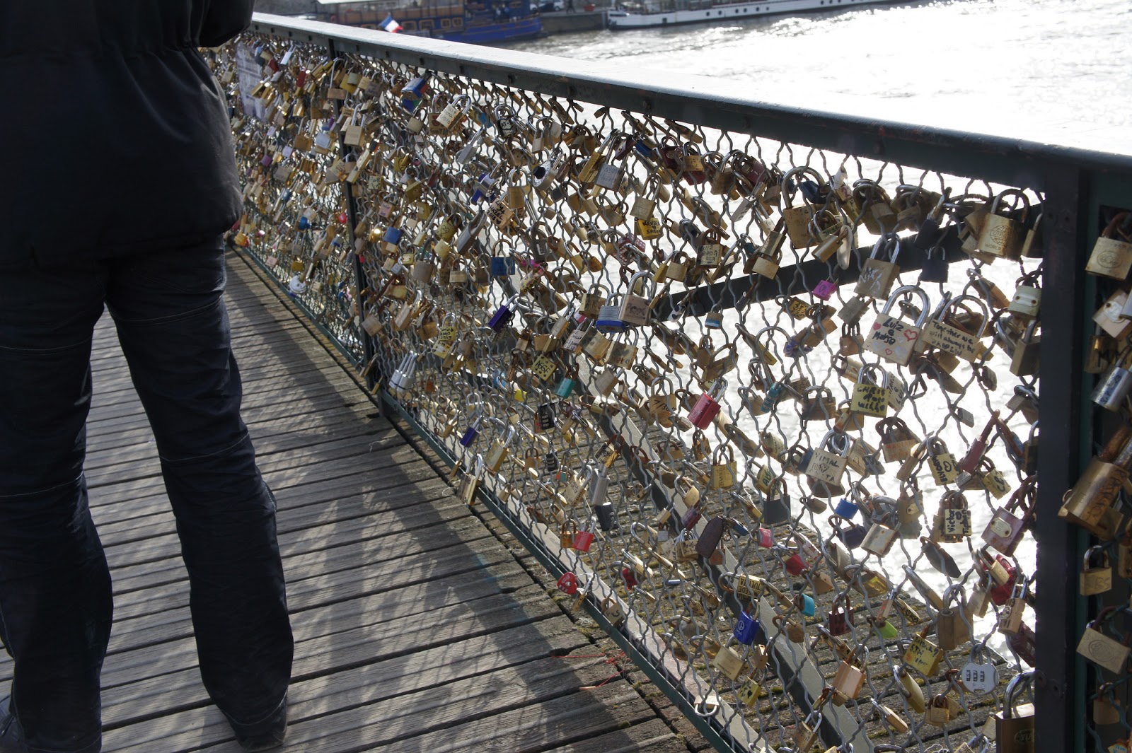 Pont des Arts - sillalla oli satoja lemmenlukkoja. Paikalla oli lisäksi paljon ihmisiä vannomassa toisilleen ikuista rakkautta kiinnittämällä kaiverrettuja lukkojaan sillan kaiteeseen. Niin kaunis kuin se ajatuksena onkin, en voinut olla ajattelematta sitä, että monikohan näistäkin rakkaustarinoista on päätynyt not so happy endingiin? |